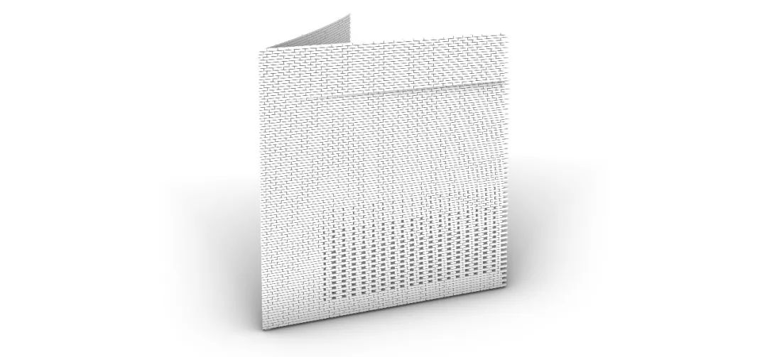建筑一层分为外部曲直相交的方形砖墙与内部圆筒砖墙,由10万块陶砖组合而成。通过大面积实体错缝拼接与局部渐变镂空的砖墙组合方式,达到纹理渐变效果,其中在转角与窗户交接处分别做了锐角收分处理,让细节更为挺拔。