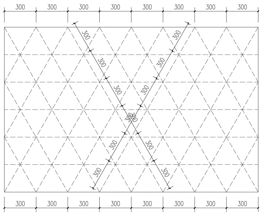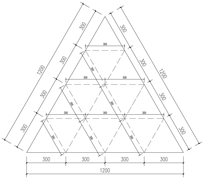 为了更好的控制项目落成效果,降低施工难度,我们将龙骨确定为边长为1200mm的正三角形,既可以契合最小单元模数,又有利于施工控制,保证项目竣工效果。
