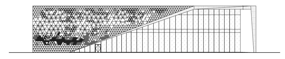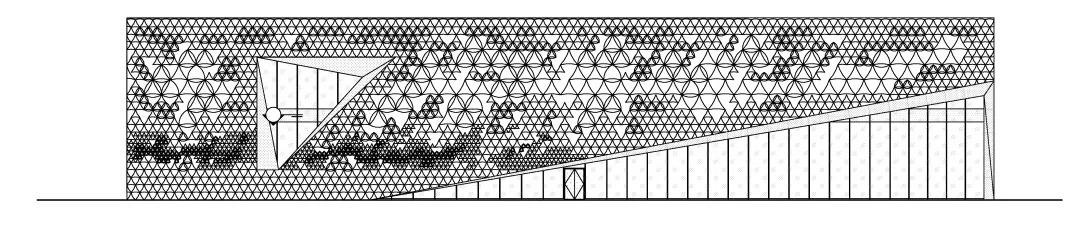 参数化方法其实就是用相对简单的逻辑以及系统性的思维,用参数化工具将它们组合或者排列的方式来解决这个问题。在选定模数形式的前提下,我们将整个立面分割为300mm*300mm的正三角形模数单元,以此最小模数单元铺满整个立面。