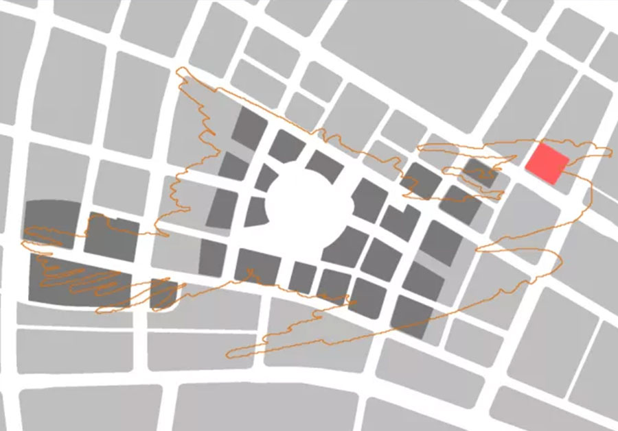 经过很多轮的方案比选,最终选定了方形建筑方案。方形建筑要做到干净大气必须掌握好比例、研究好肌理。这样,把1.17公顷的基地作为“面”,把京沪铁路作为“线”,把建筑作为“点”让点、线、面在这个项目里完美地组织在一起。