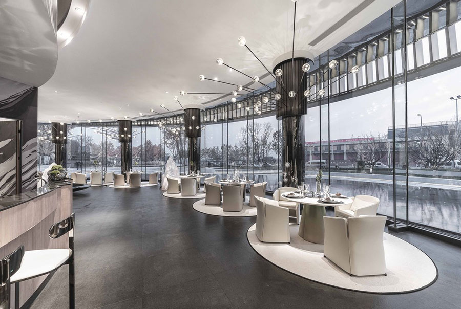 但面对新场地的时候又不想太张扬,因此圆弧的运用成为了我们的首选。圆弧有一种与生俱来的特质,在外侧看给人一种优美感,在内测看给人一种向心感。