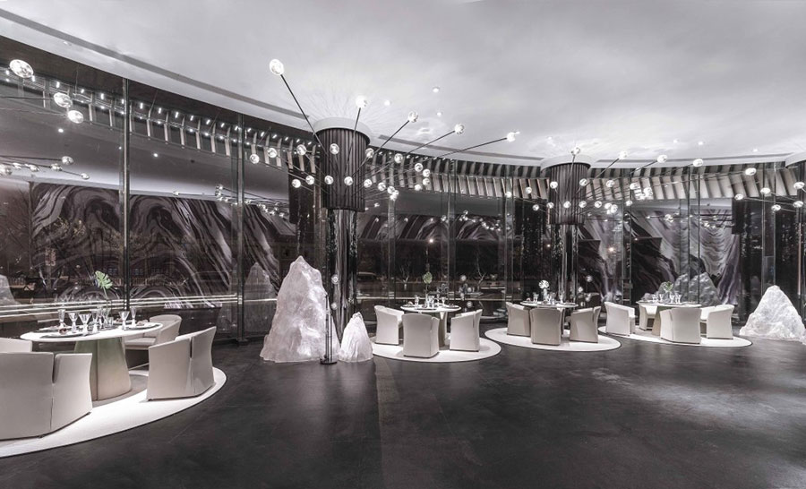 外立面玻璃的设计,仅用玻璃肋支撑的全通透观景窗,单片尺寸达到1.8m*4.8m,尽量削减了人与景交流的界面屏障。