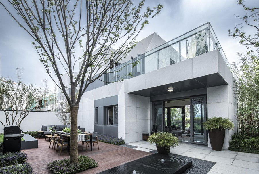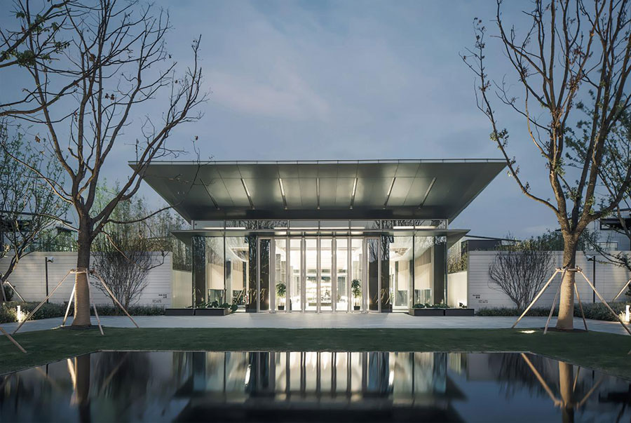 中式风格的营造,不再拘泥为传统符号的模仿与抽象,而是以江南传统园林及民居为原型,从叠山理水到粉墙竹影,每一个细节都述说着建筑自身的情感记忆。