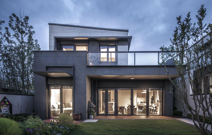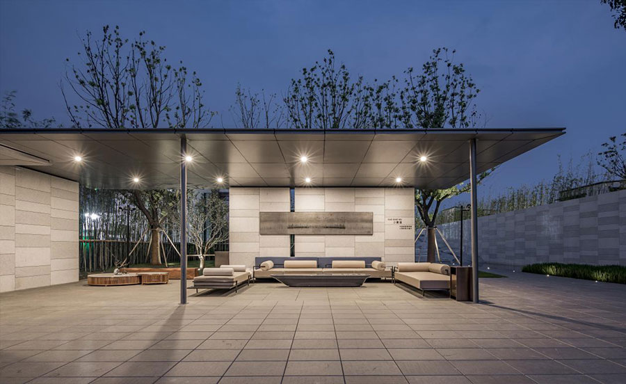 曲化的歇山屋面,回应着独特的东方建筑语言。悬挑的景观露台,表达出极简的现代设计手段。从体块关系到建造细节,每一处都基于使用者的角度来考量。木纹铝板的收边,暖色格栅的装饰,一顺空丁的洞石,细节设计的背后则是情感与记忆的表达。