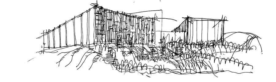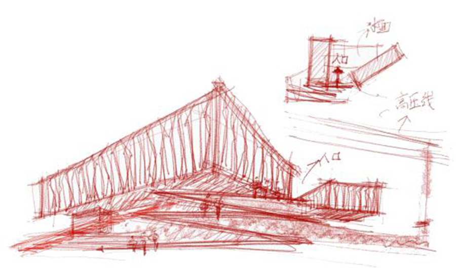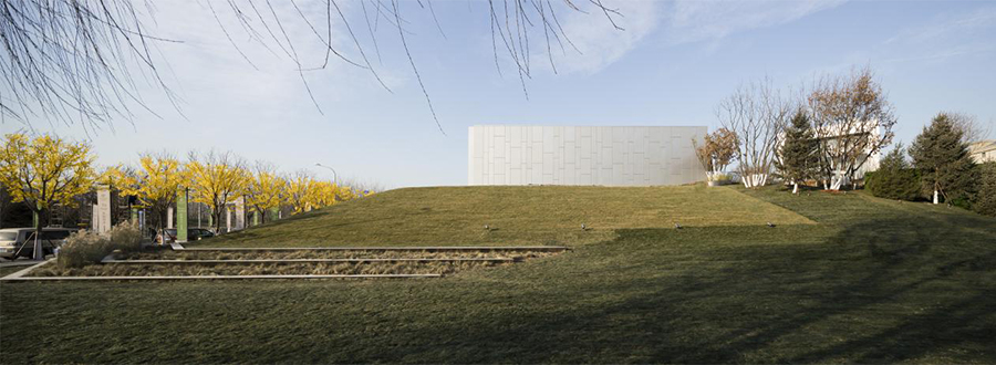 本案坐落于文化氛围浓郁的北京海淀区,用地南侧为城市绿化带,东侧和北侧为住宅用地,西侧为公园,因此想要做对生态环境友好,具有鲜明的时代性和文化氛围的设计基调便确定了下来。我们希望不仅仅是把建筑做在公园边上,而是建筑本身即成为公园的一部分。于是,这样一个悬浮在草坡之上的玻璃盒子就应运而生了。