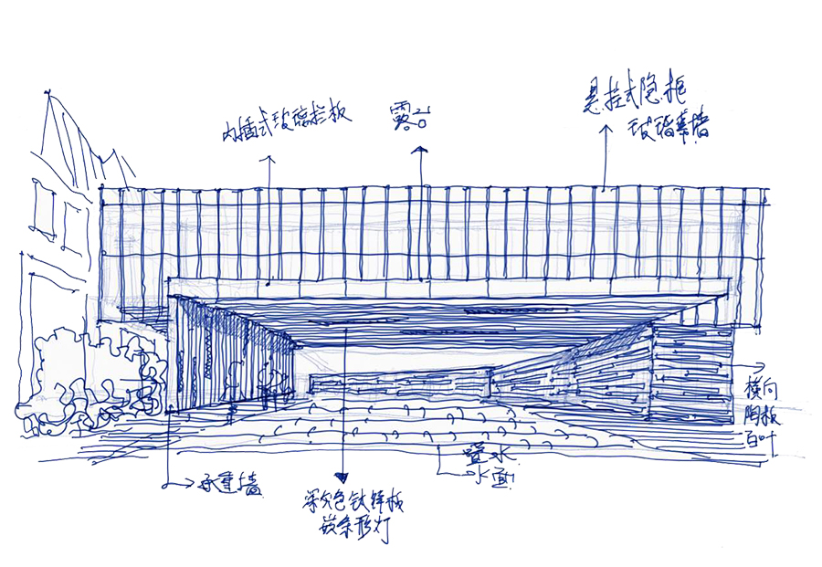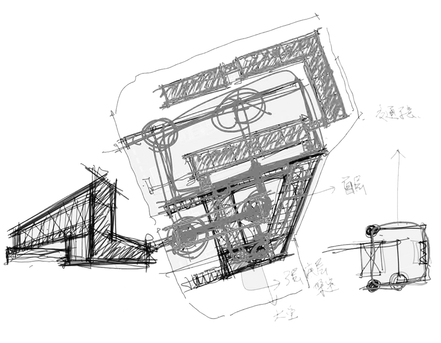 除了建筑自身风格与形式方面狭义的“自由”,我们更希望其对于城市环境的关系也同样是“自由”的,因此我们打造了一个可穿过的建筑空间,并赋予它繁复而充满可能性的流线。