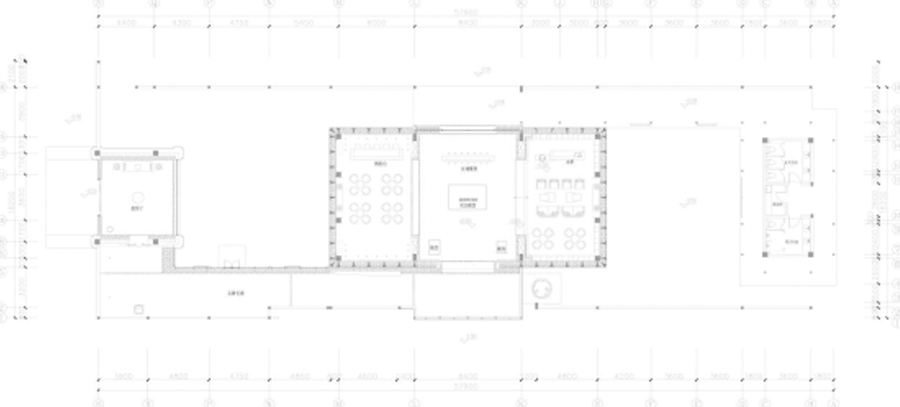 主要展示区采取多重院落式布局,以厅、廊。阁进行功能组合,前院、二院和后院构成的多重院落不仅满足了展示流线的外向与内敛的需求,也暗合了江南园林中院落的构成形式,建筑体量的实体与其间院落的虚空互为因借,在实虚的演化中我们完成了建筑与空间的塑造,建筑内部空间对于庭院是一种延续,庭院是建筑内部空间向室外的延展和渗透,建筑的外界面和庭院的内界面的统一使建筑之实与空间之虚不再单纯对立,而是在相互的定义中彼此延续。