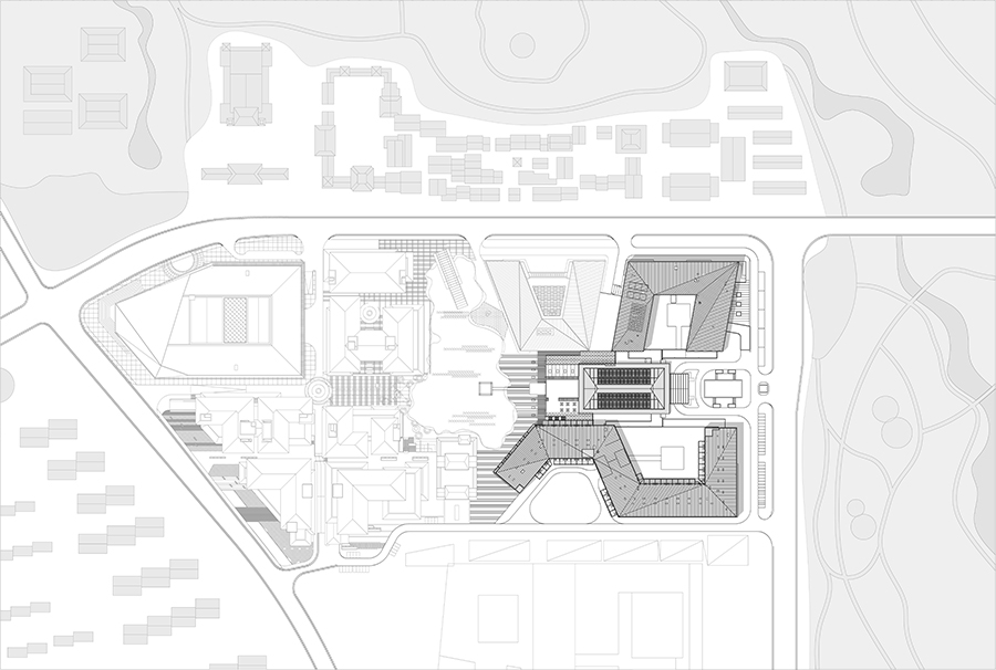 西安是一个极具秩序感的城市,城市的街道像坐标一样左右着人们的生活,在国内城市形象趋同化的时代,正是这种体验使这座城市保持着与众不同的气质和特征,在快速的城市更新过程中,常常伴随着对基地文化属性和记忆生态的创造性破坏,而正是这种源自里坊式的城市格局,和中国传统文化中的秩序精神,使这座城市依然延续和保持着独特的文化魅力,因此对于用地边界和街道界面的塑造,我们在设计中充满敬畏之心,与其说是建筑设计,不如说是用地规划以及人文格局的塑造。