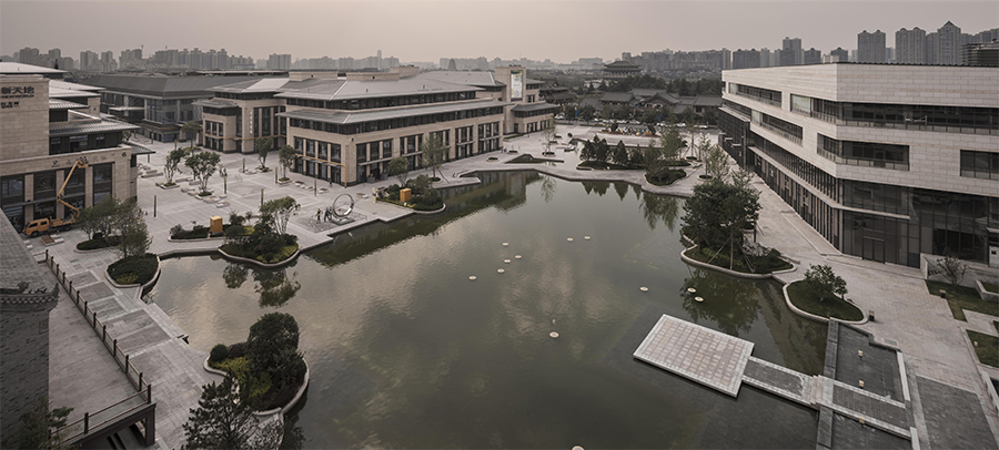 与基地相邻的曲江池是西安著名的历史遗迹,秦朝时就有了很大规模,西汉初年,汉武帝刘彻在位期间,对水源进行了疏浚,使水面得以扩展,因其河岸曲折,于是有了“曲江”的美称,隋初,建大兴都城,曲江被扩展成为都城的一部分,称为“芙蓉池”。唐时,曲江成为皇家园林,《全唐诗》收录的500多位著名诗人中,竟有一多半曾在曲江留下过足迹。唐以后,曲江池逐渐衰败,已不见当年胜景,直至本世纪初中国经济发展和市民文化需求,在政府的推动下,曲江环境整治,文化建设,该区域再次成为西安旅游、休闲、商务的核心之地,再现了“青林重复,绿水弥漫”的山水人文格局,曲江盛景得以重现,从某种意义来讲,曲江的兴衰变迁,记载着一个城市的故事与回忆,也折射出这个东方文明古国的国运与兴衰。