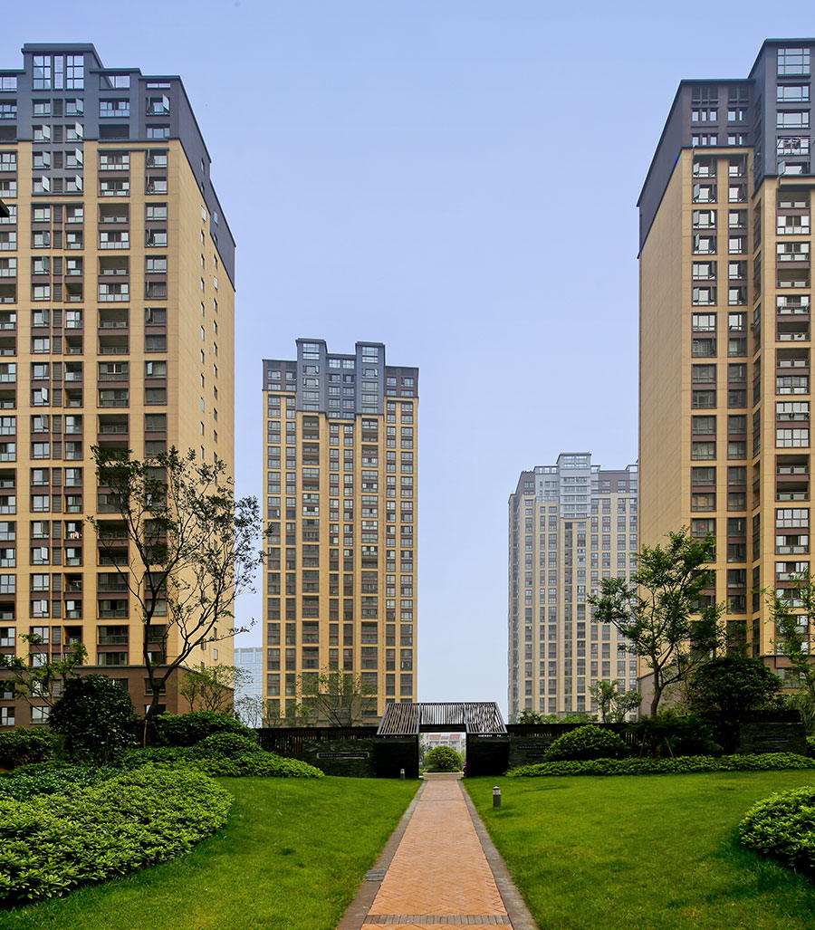 本工程规划用地位于合肥新旧城市交接地带,五里墩立交桥西南角。处于长江西路和合作化路交叉口西南角位置;北临长江西路,五里墩高架桥西起点;东临合作化南路,五里墩高架桥南起点;南临50~60年代三层居民生活区楼;西临一中石化加油站。该地块在城市中起到承上启下的作用,因此本项目有着成为标志性建筑的城市诉求。基地位于高架南侧,由西侧公寓楼起向东带动商业动线,构成线性开放空间,这样既保证了商业面的连续丰富同时有效地隔离了城市噪音。这条由公寓楼主导的商业东线起到了划分区域确立边界和联系场所的作用。