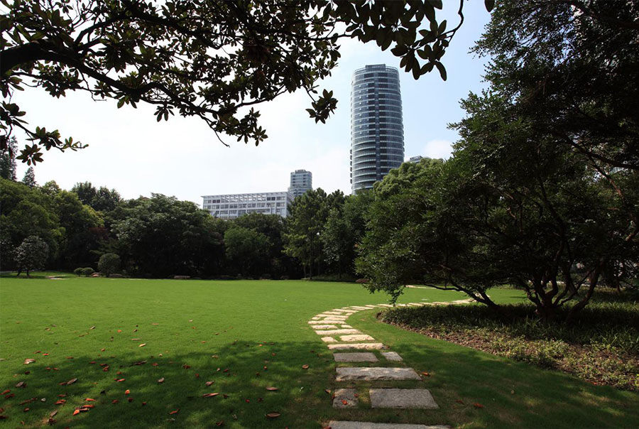 波动起伏的草地和散发着芳香的花朵形成了湖水美丽的曲线。清晨慢跑,周末野餐,孩子们放学后放风筝,一天劳累之后在这里散步,这一切让生活更加富有情趣。南部的花园成了湖滨公寓的基座。被树藤遮盖的凉亭、花园、游乐场、网球场、周末的音乐会,人们在这里生活、娱乐,享受着一切美好的事物。