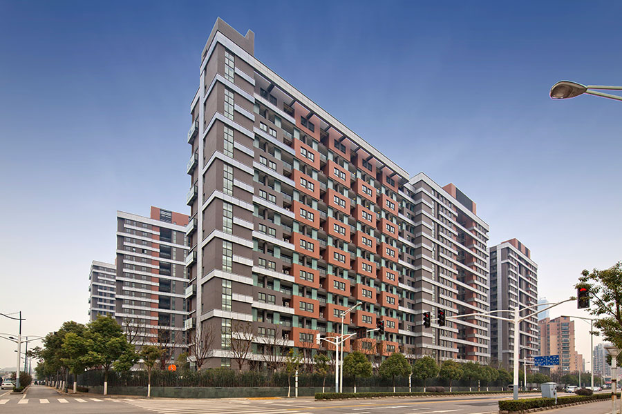 传统的社区环境均是围墙闭合的高宅内向性封闭社区,缺乏对城市的贡献,也缺乏必要的生活功能设施支持。我们营造了一个小型的城市生活广场以及一条通达内部的商业街区,以独立的商业形态营造了一个具备休闲交往性质的社区环境。