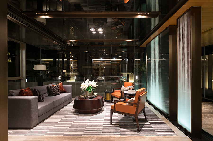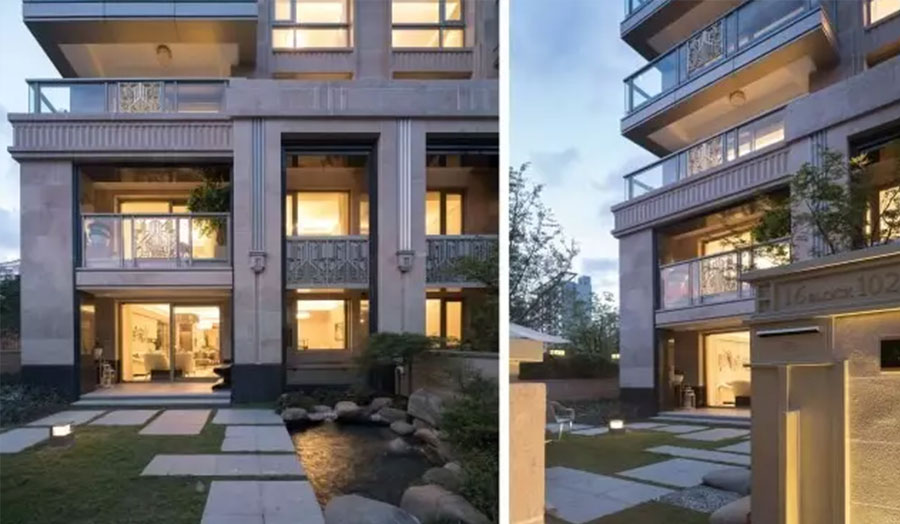 嘉宝前滩后院项目的叠拼产品超大面宽,墅感空间强,私人花园入户空间,地上地下皆可电梯直接入户。项目地块西面临河,沿河岸增加卵石铺地和木平台的设计,可供小区居民沿河岸散步、休憩、娱乐。我们称该项目的叠墅产品为“轻奢宅院”,源于一种生活态度。之所以称之为轻奢,因为它体现更多的是原创精神和对材料工艺的执着追求。