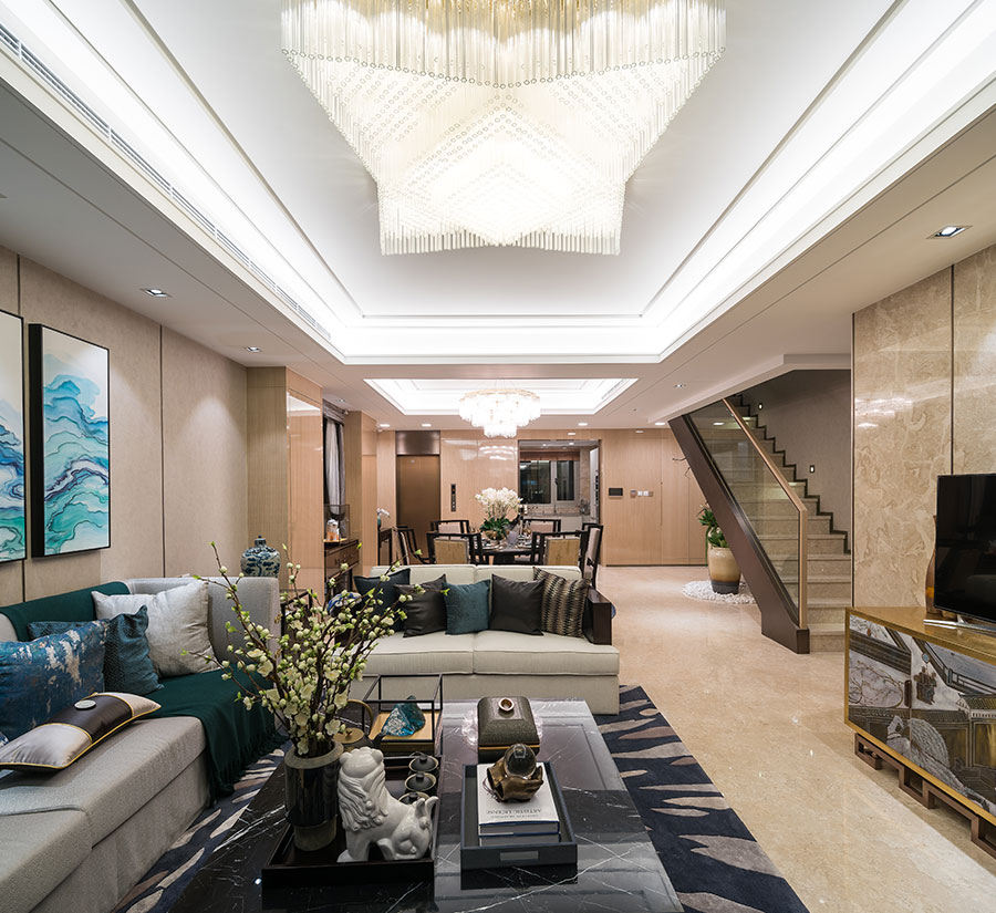 本案探索材料与质感的完美交汇点,材美工巧,富丽绚目。石材的厚重与历史感从每一条的纹路中体现,充满品质与美感,彰显主人的身份与品位。