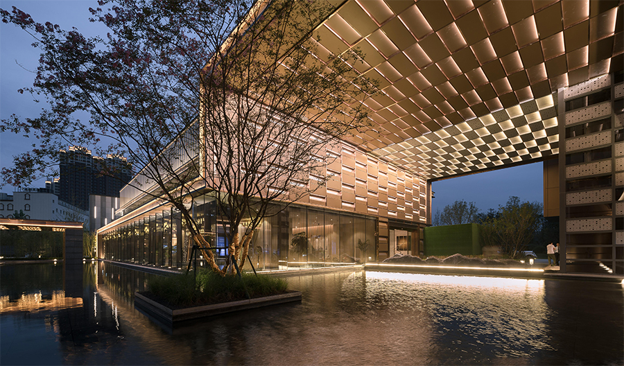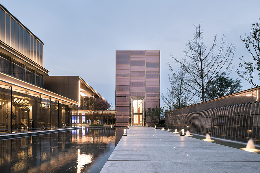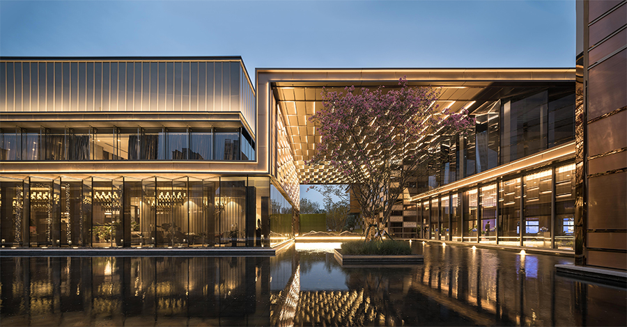 建筑设计侧重于现代性,融入了轻奢理念。建筑空间整体格局上讲究起承转合的气韵变化,打造出一个“传统空间现代演译的社区中心”。禅味萦然,心境悠然。
