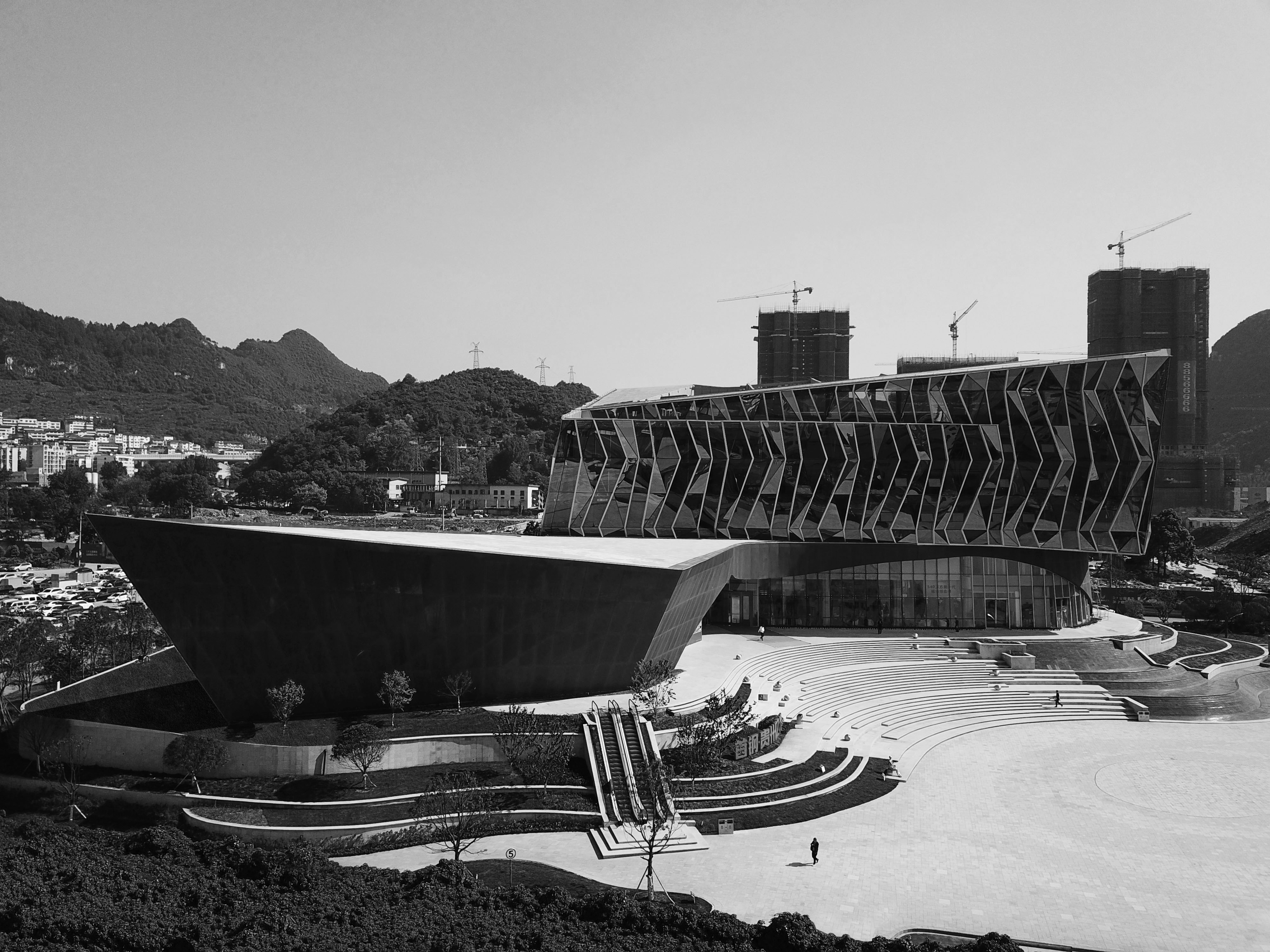 本案位于贵阳市主城区南明区东南角,周边配套建设成熟,交通条件较为便利,周围景观绿化条件良好。项目用地是贵阳中心城区稀有的一块大体量开发用地,连接老城和空港新城,处于临空经济辐射区。设计师试图用「解构主义」手法,通过高科技体现现代工业文化的活力;将老厂区的规划图底与历史遗留剪碎,重组,散落的记忆碎片在老厂区的各个区域形成新的时光节点。设计师选择摒弃冗杂的设计元素,适当保留设计的细节,这样既适应项目环境本身的场地感,又给来访者营造出一种在过往喧杂的接待中心体验不到的「平静的舒适感」。