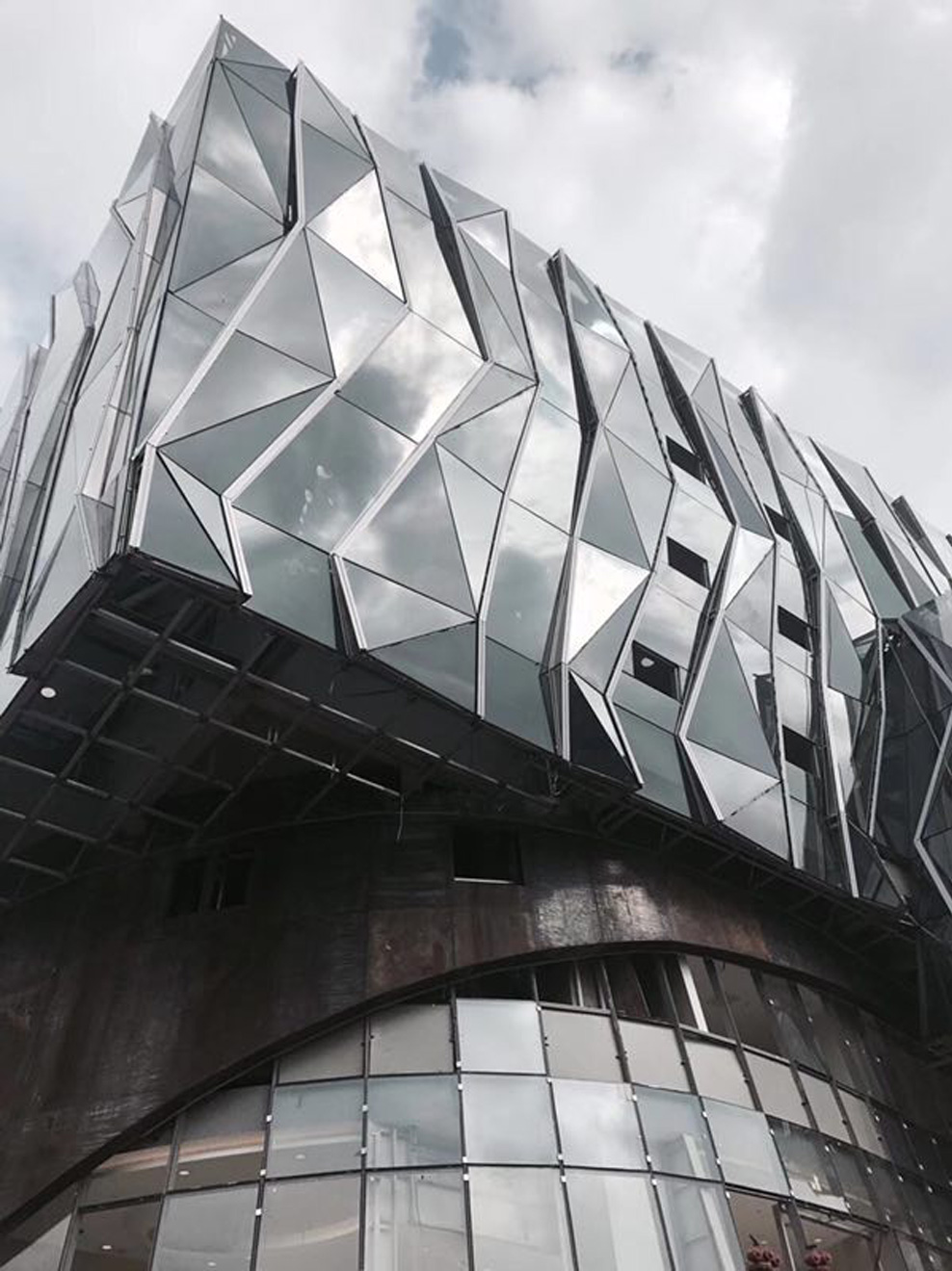 设计师首次完整应用BIM-Revit信息化建模设计的项目,先进三维的设计手段成功地实现了建筑师精确地对建筑表皮的设计。特别之处为破碎的想法,非线性设计的过程。
