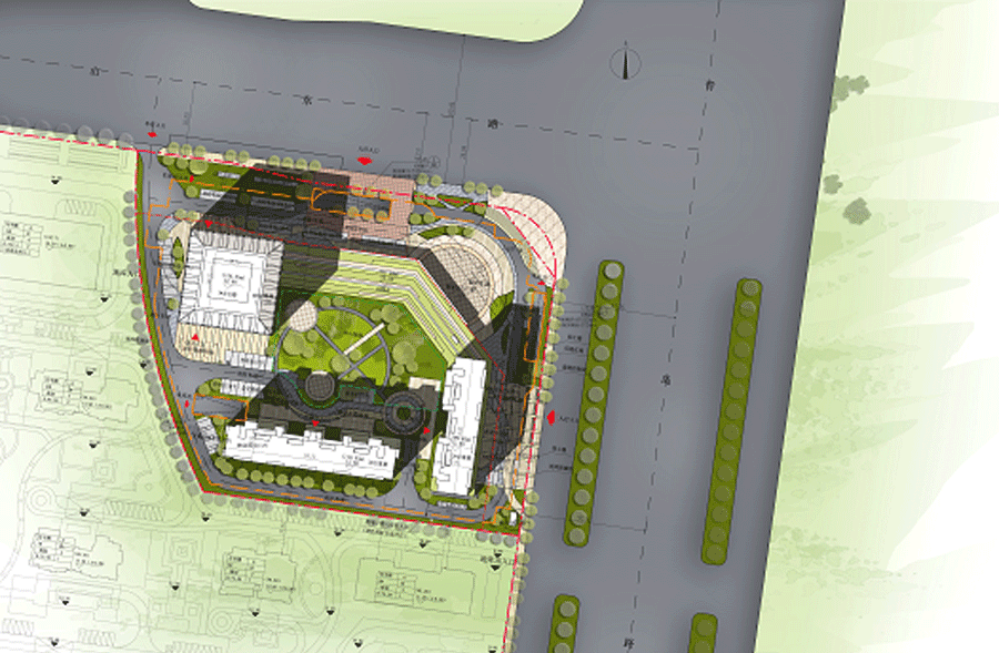 项目由一栋170m超高层写字楼,一栋120m米和一栋100m高的观海公寓以及三层沿街底商构成。建筑取意东方礼器——圭。方整端庄之气,“圭锐象春物初生”。