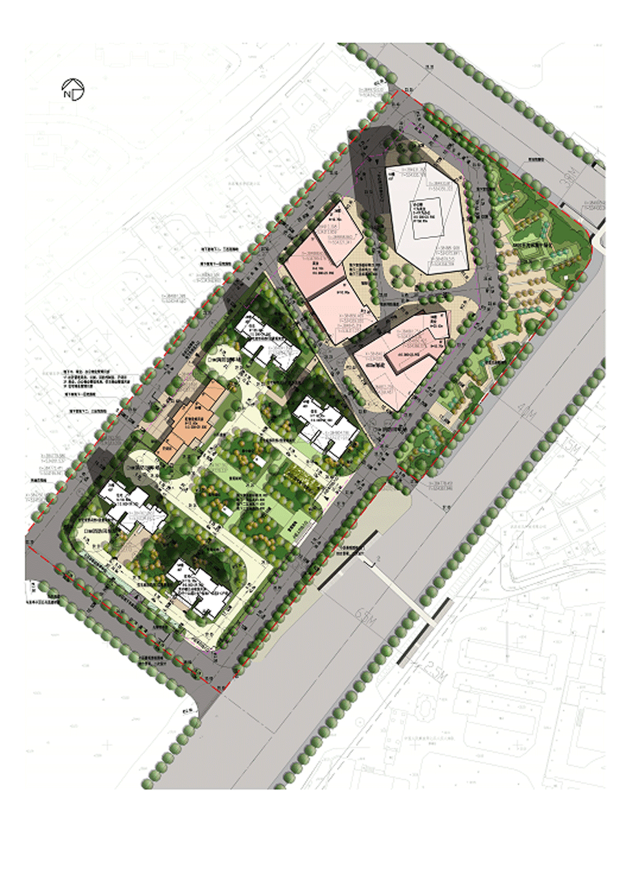 本案基地位于武昌北主城区二环内,紧邻城市主干道中北路,南侧为岳家嘴立交,优越的地理位置给项目发展带来了便利,而特殊的用地条件——南北道路高差近7米又制约整体设计。