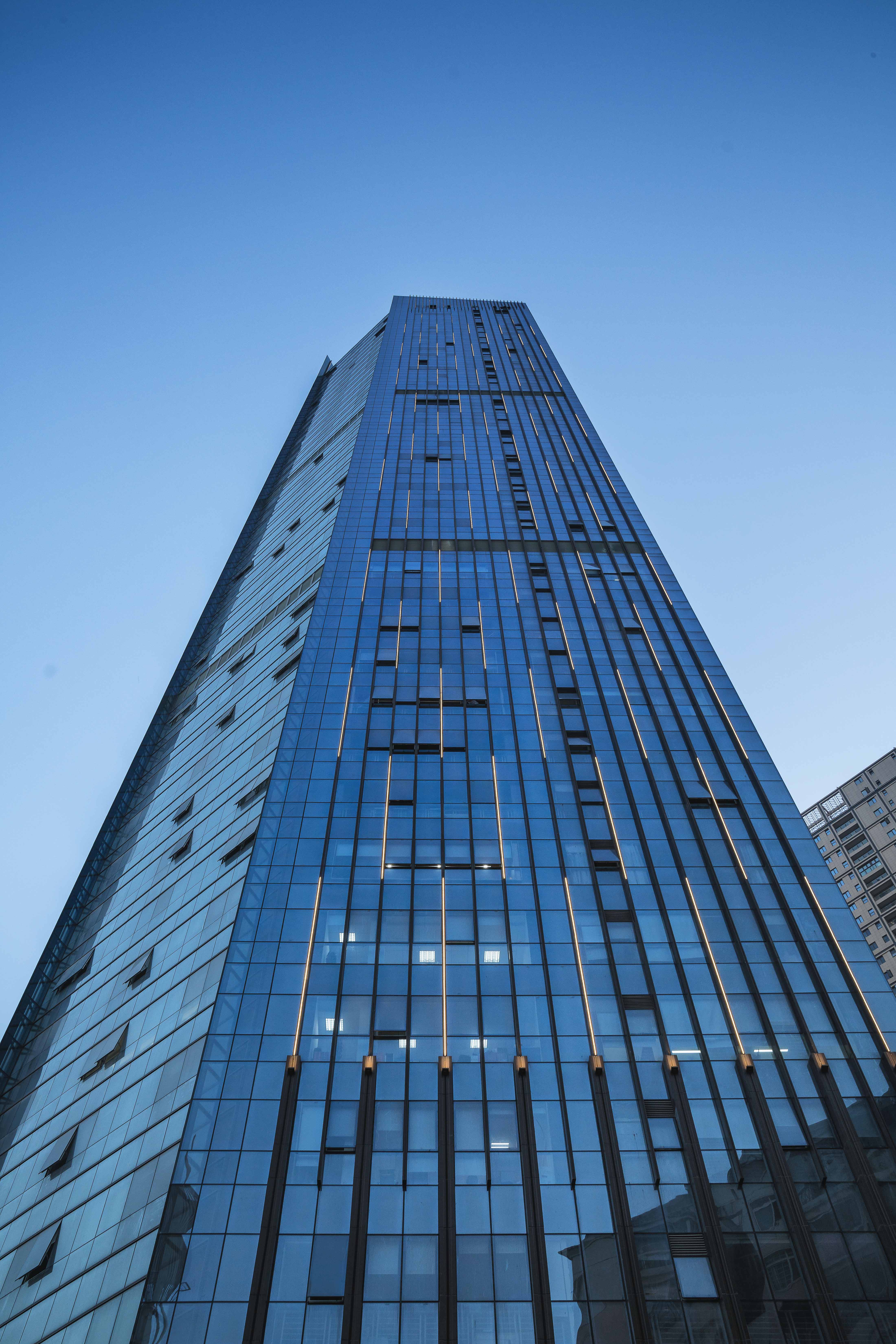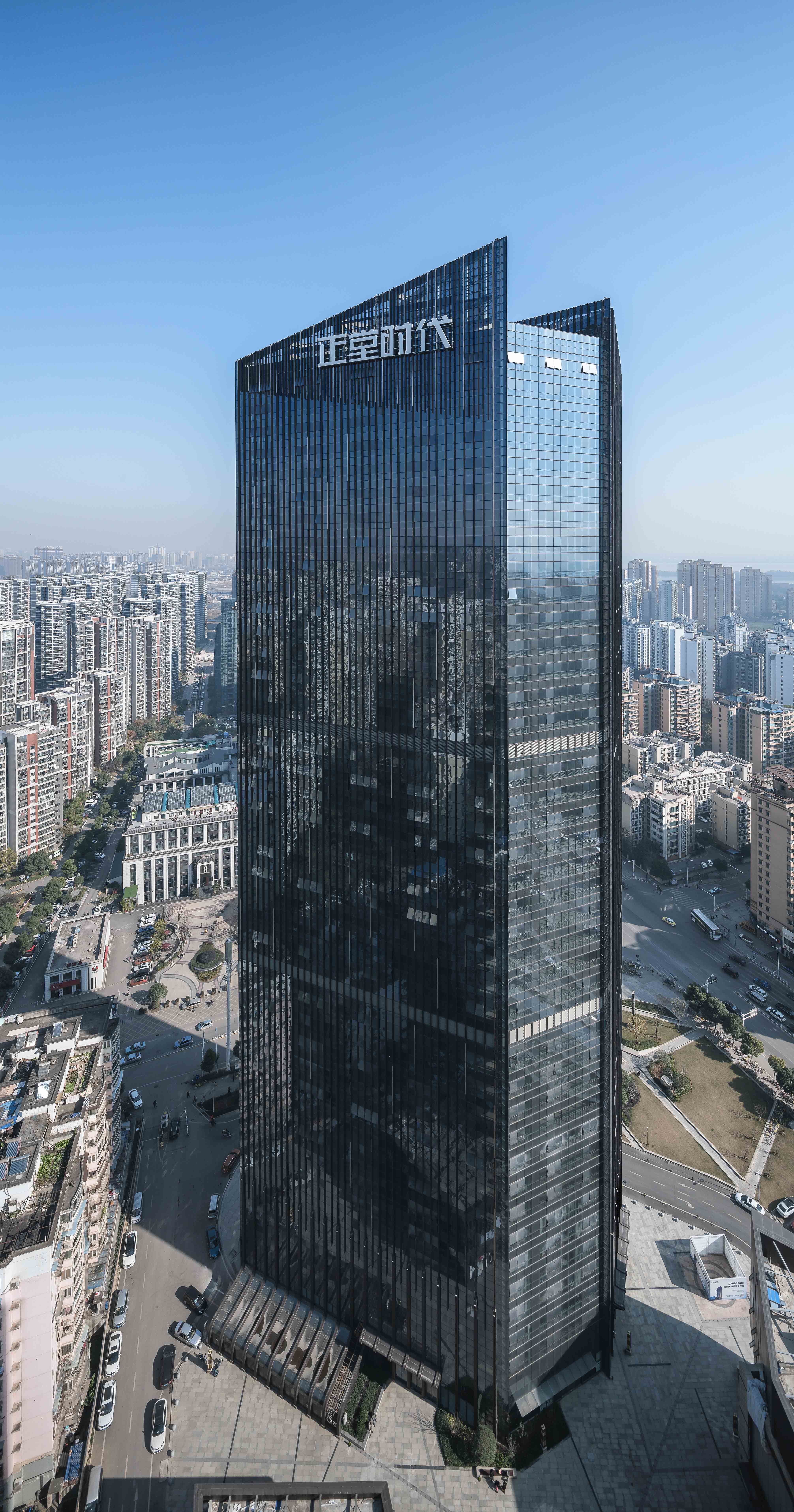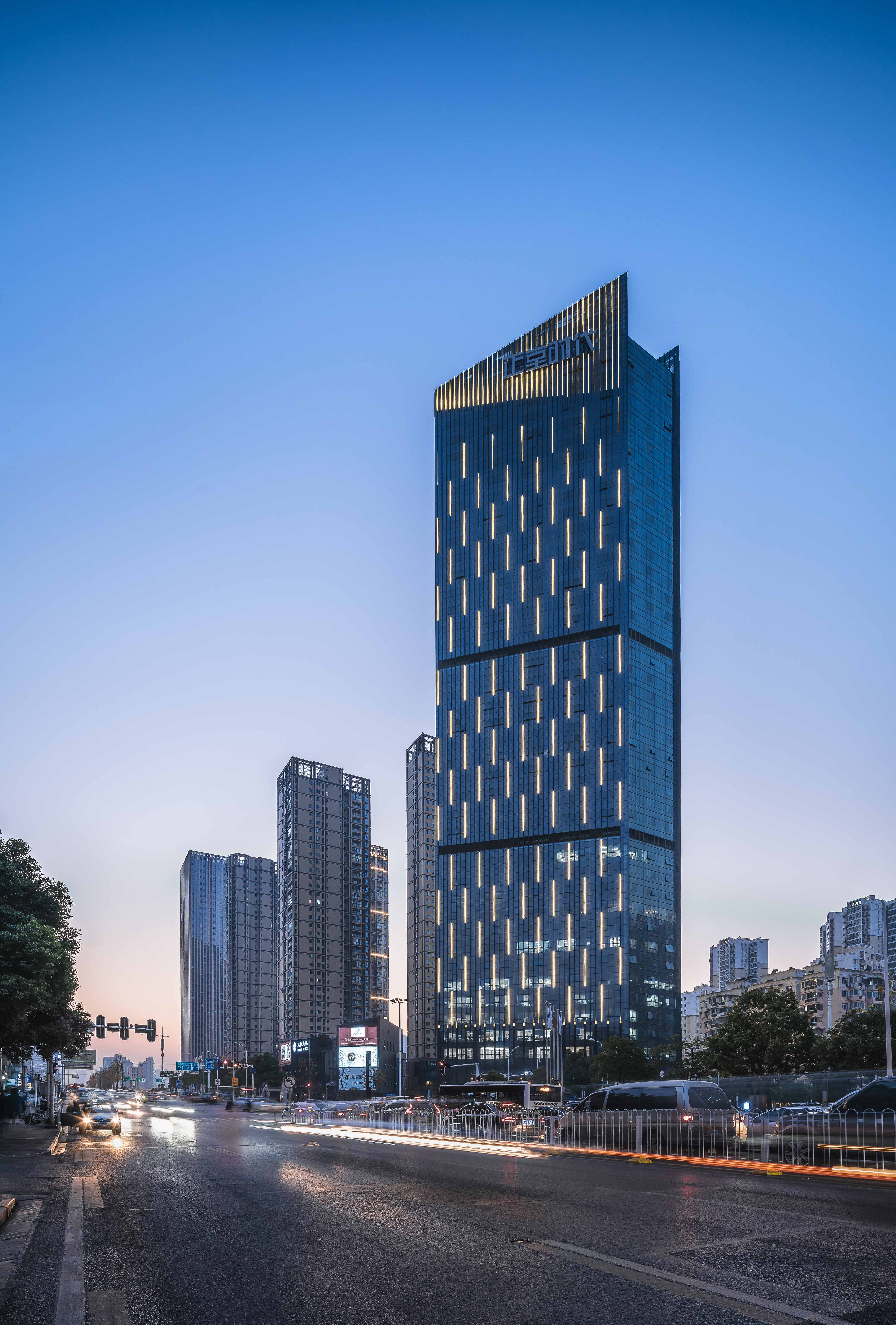 办公楼高达185米,我们又利用竖向线条进一步加强了建筑的高度感,使其显得更加挺拔,同时,我们通过统一的立面元素,将建筑划分为经典的三段式,既可以在城市层面强调建筑的标志性,还可以在使用层面上满足不同客户群的要求。