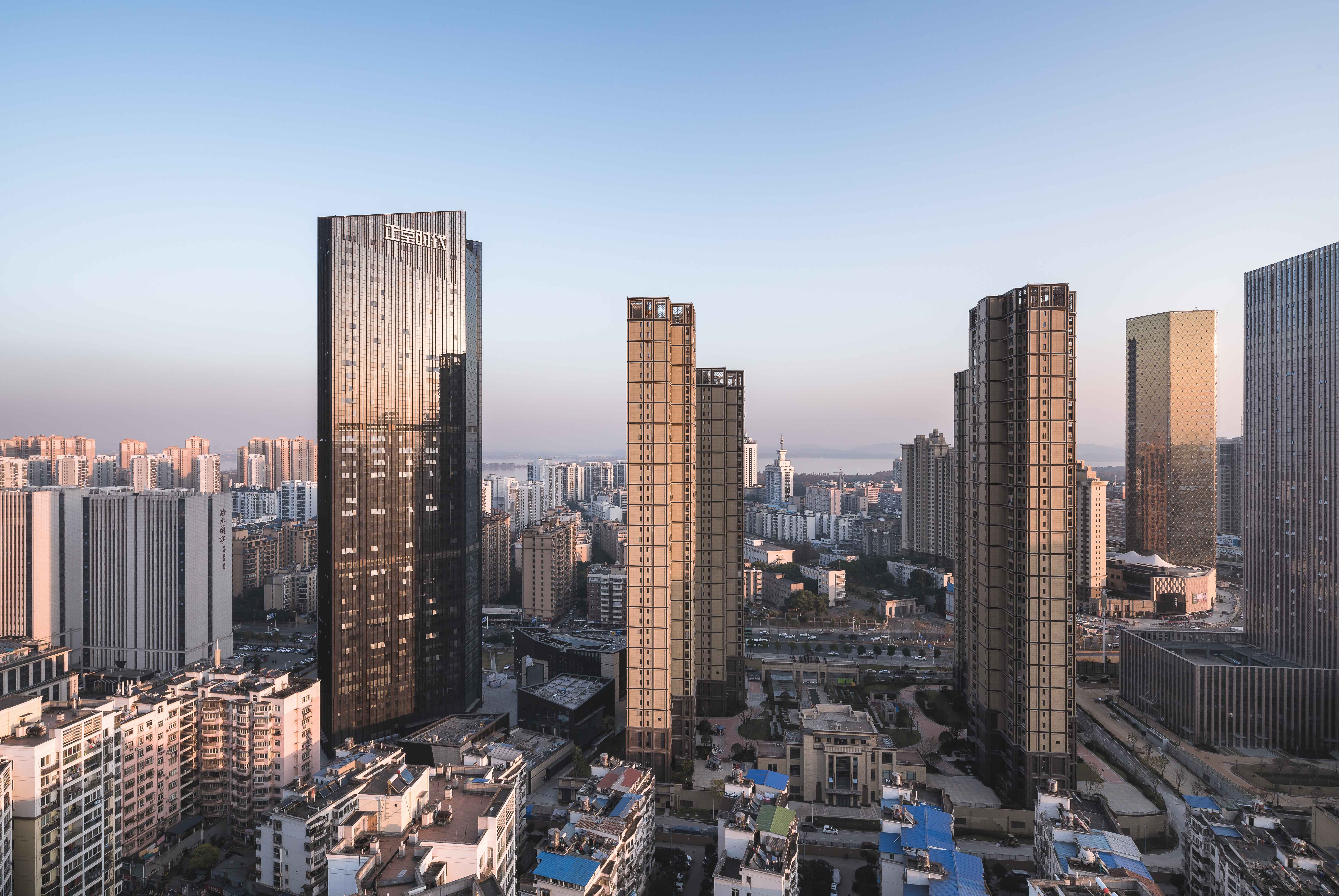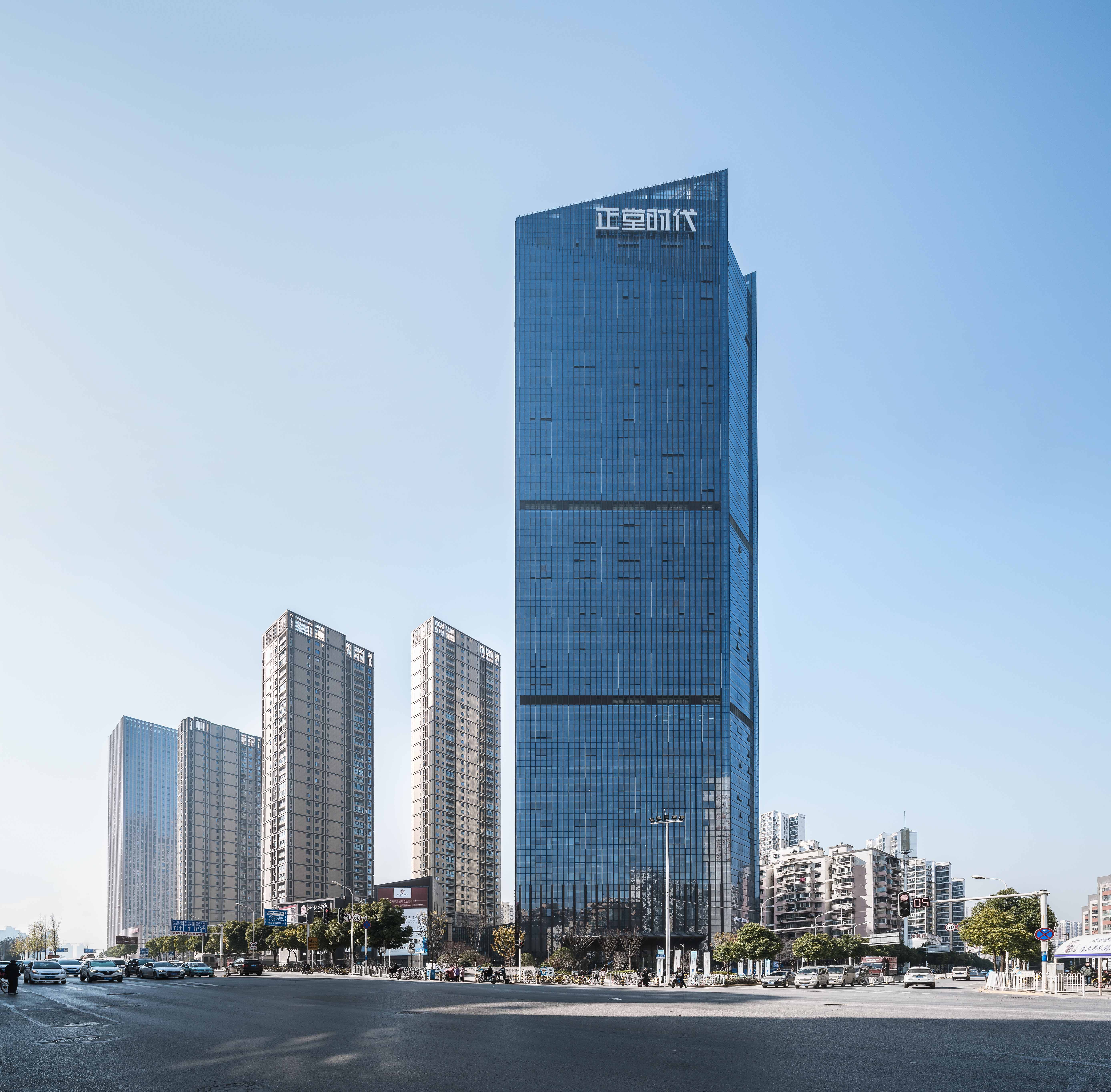 在整体规划中相互呼应的五栋楼,各自有着自己的位置、形态、高度,错落有致的排列为城市增添一段和谐篇章。