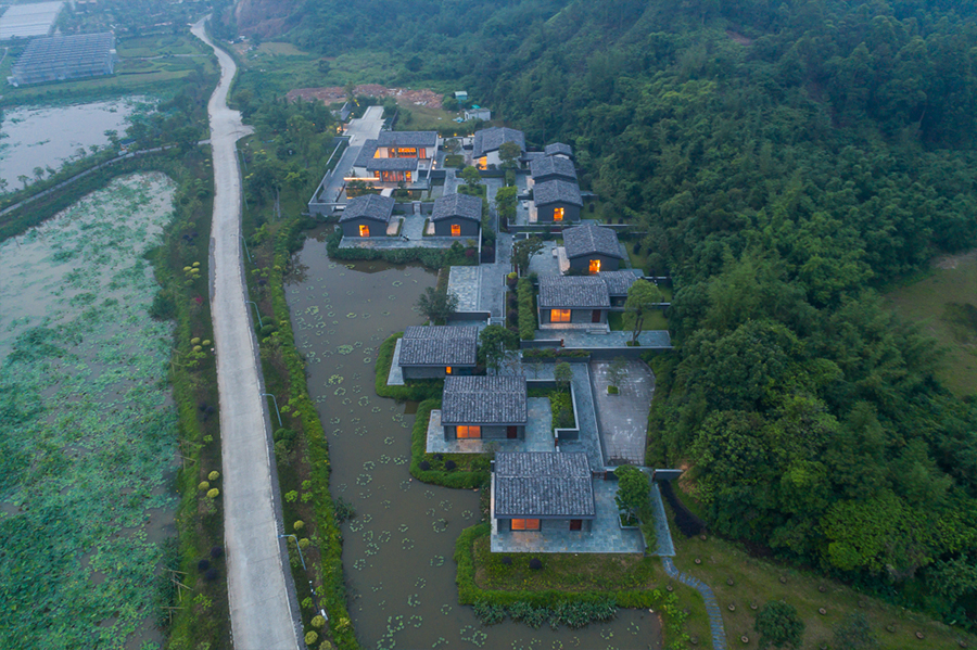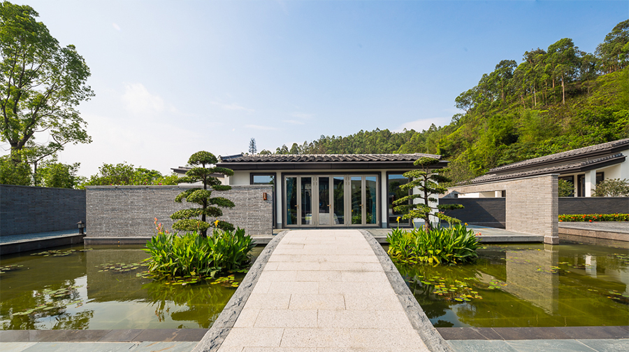本案位于珠海市斗门区白蕉镇六乡竹银水库旁,这里有着丰富的地貌及肥沃的土地资源,使得这儿绿植环绕,放眼望去满眼绿荫环绕,是得天独厚的盛夏避暑胜地。