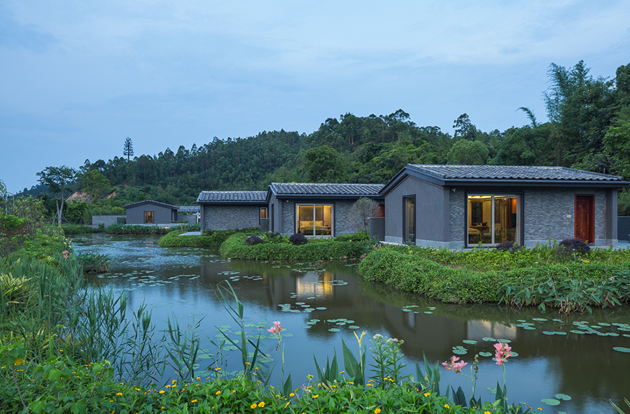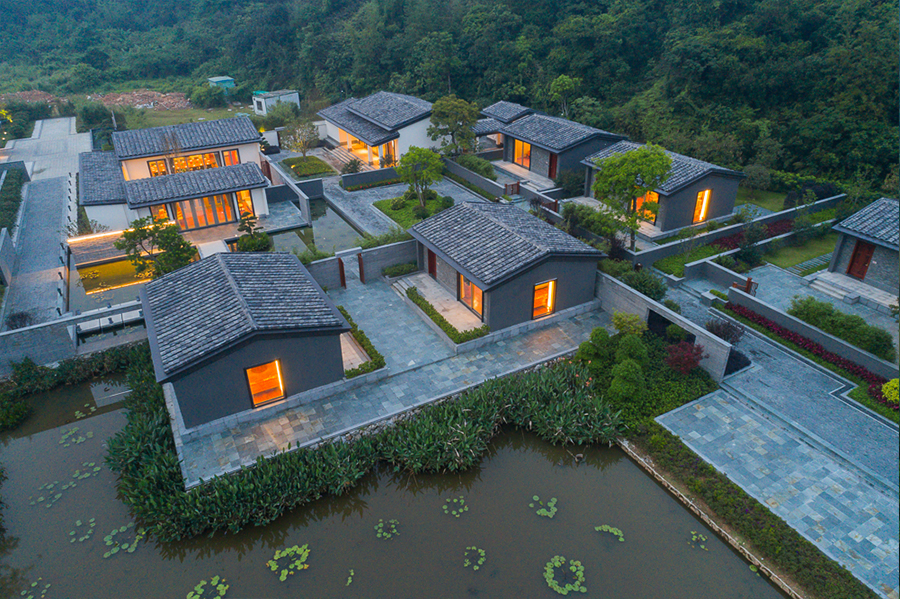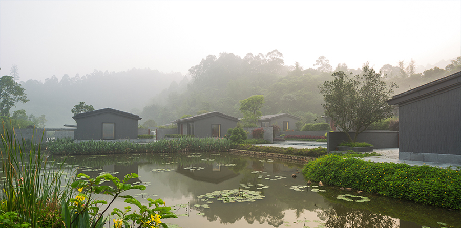 富有诗意的名字,引发山水画般的联想,荷院山居林山傍水而建,视野开阔,有着田园牧歌式的美丽和悠闲。