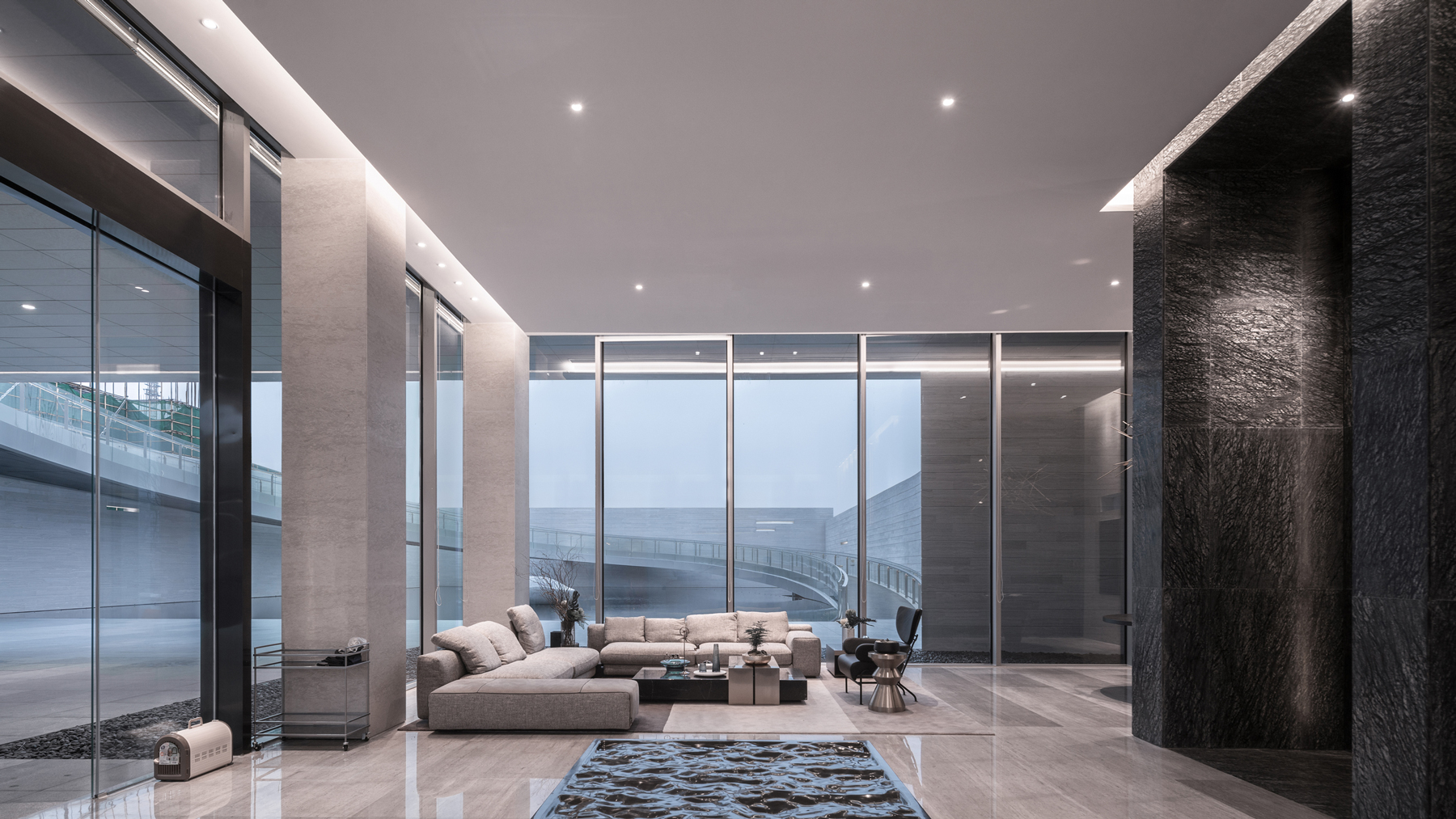 在考虑建筑透明面的组合形式,即几何学时,我们决定采用规律并置的玻璃幕墙,不仅借此提供优美的风景,同时满足视觉透明性,一侧是环桥院落,一侧是开阔的象湖向下游延伸。视域记忆在设计中的重要性强调了我们对建筑与其他地理环境之间关系的重视程度,以借此带来了互动拼贴化的视觉体验。