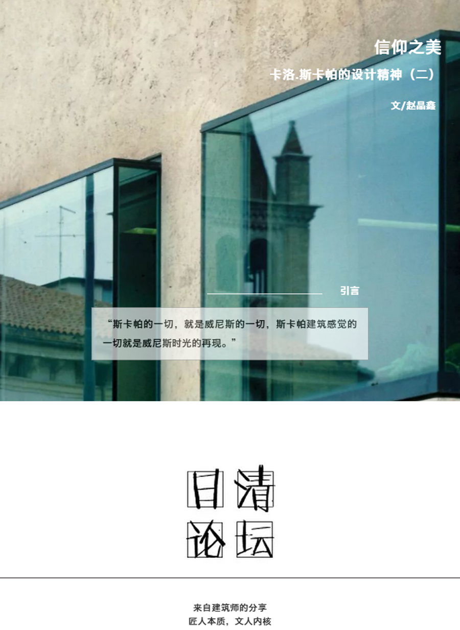 贯穿斯卡帕的设计生涯的作品中,隐藏在设计之中的抽象的精神线索是什么,其实是非常值得考虑的问题,在我看来他的设计中一直潜在流露的是身为威尼斯人的海洋信仰,其中对水的暗示,潮汐的利用,对大海的敬畏一直体现在不同时期的作品之中。