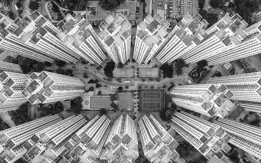 ◎柯布西耶三百万人规划,香港住区航拍,图片来源:网络