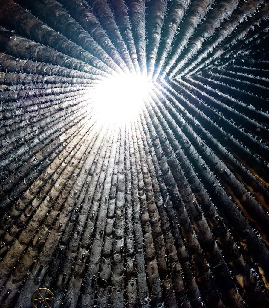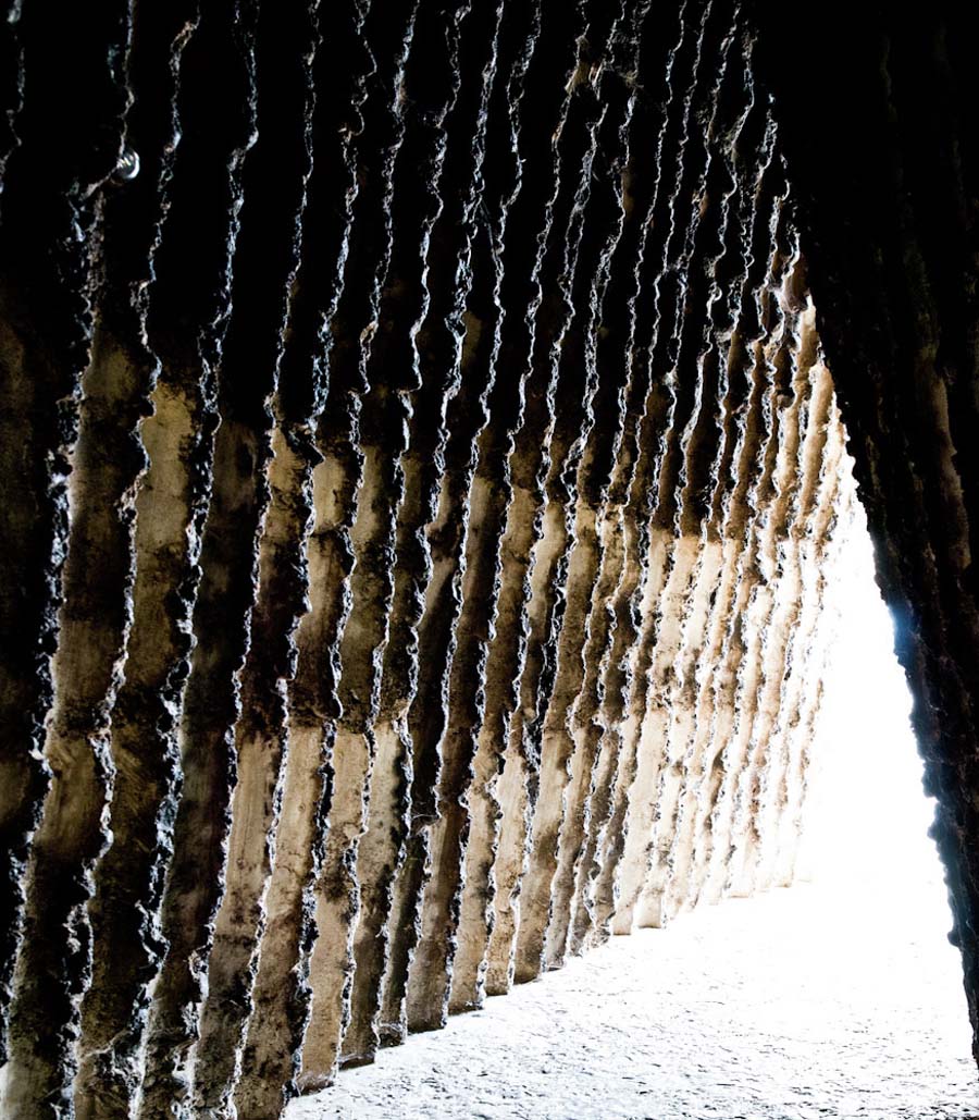 “为了设计与生活存在感觉联系的建筑,人们必须以远远超出形式和建造的方式去思考。”这段来自彼得·卒姆托。他的布鲁登·克劳斯田园教堂设计和斯卡帕的联桥方案及其相似。在这里,刚性的矩形外观之下隐藏了一个神秘且引人深思的内部空间。 然而最为重要的教堂它的建造方式中,最初是一个由112根树干支起的棚顶。在框架完成后,混凝土被一层一层地浇筑夯实在现有表面之上,每层约50厘米厚。当24层混凝土固定完成,木框就被点燃,留下一个中空的黑腔和烧焦的墙壁。屋顶开口,控制着教堂内部的气候,因为雨水和阳光都会从开口穿透进来,创造出独特于此时此刻的环境与气氛。从建造过程的开始,到空间的形成,这种仪式化的体验贯穿始终。