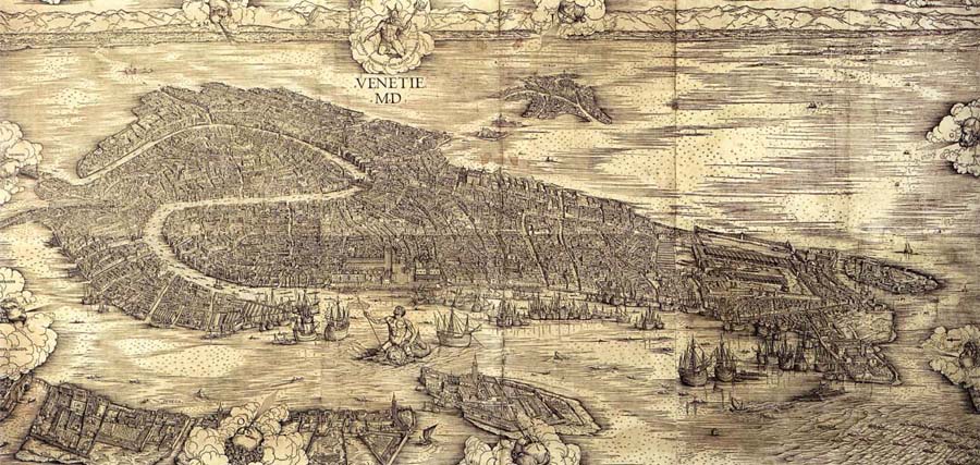 一位评论家曾说:“斯卡帕的一切,就是威尼斯的一切,斯卡帕建筑感觉的一切就是威尼斯时光的再现。”威尼斯本省就像一块巨大无比浮在水面上的石头。迪.巴巴里绘制的1500年代的威尼斯地图中,正显示他的南北被两个神的力量所主宰:水神及海神。他们都在云里带着有双翅膀的帽子带来东方的生命的风。在他们所驾云的下方拉丁文写道:“我,海神将最好的光芒赐予所有的帝国领域。”于是这个凌驾一切的威尼斯靠着海神、风及船成了荣耀中的荣耀。