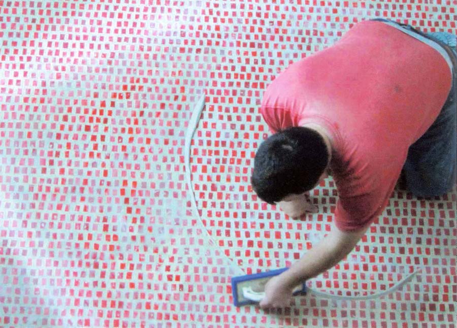 在“奥利维提展示厅”地面的马赛克瓷砖,在”史丹帕立基金会“入口厅的多色地砖,都像极了威尼斯许多宅院,教堂的地面处理方式,这种马赛克花纹地板都是威尼斯式的”流动“化的地板特色,而这种被称为”威尼斯碎石板“的处理方法也反复呈现在斯卡帕的建筑中, “奥利维提展示厅”中许多色泽地板面正是威尼斯式风情的再现之一。