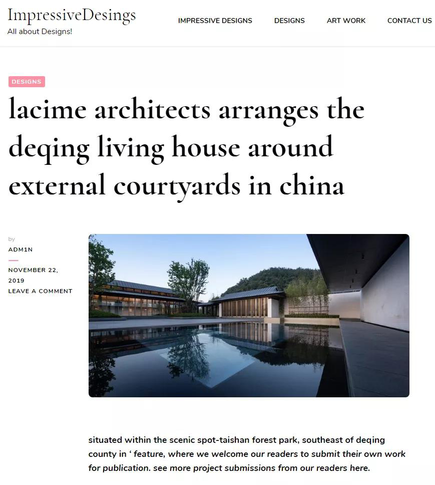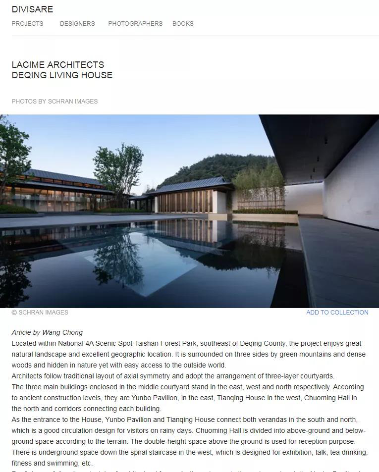 另近期多项优秀作品先后被国内外设计媒体发表,其中包括:T+A时代建筑,D+A, WA世界建筑, ARCHINA,DINZ, DIVISARE等。