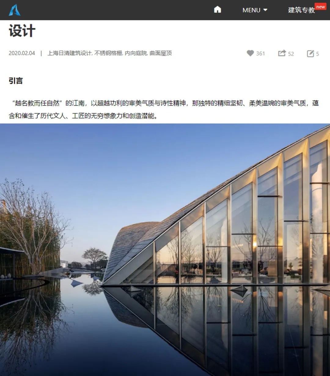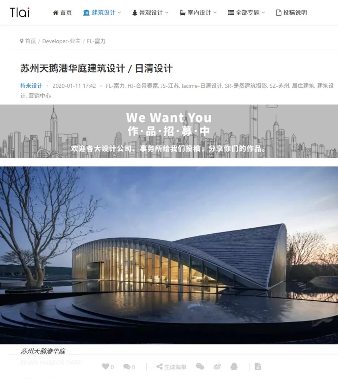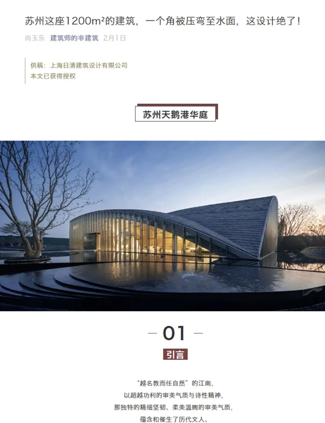 近日,英国著名杂志《 Blueprint 》刊登日清设计华东师范大学丽娃河书吧项目;与此同时亦在建筑实践杂志发表刊登;苏州天鹅港华庭先后在Metalocus、Archdaily、Designboom,建筑师的非建筑等多家国内外媒体报道。